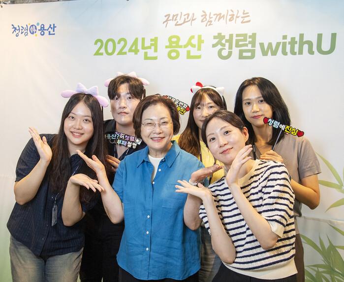 | ▲ ‘청렴 wihU 콘서트’에 참석한 박희영 구청장(가운데)이 관계자들과 기념촬영을 하고 있다. (사진=용산구청 제공) |