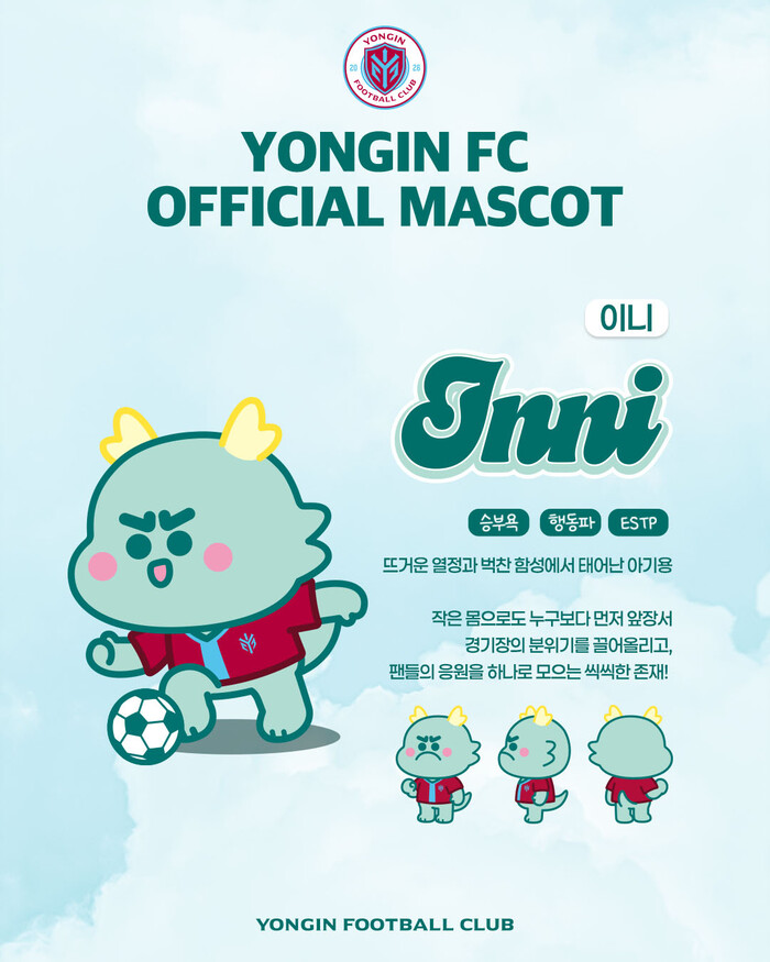 특히 두 마스코트에는 용인 시민들이 축구를 매개로 하나로 모이며 만들어낸 열정과 응원의 에너지가 깨어나, 용인FC를 상징하는 ‘용’의 모습으로 구현됐다는 서사를 반영했다. 이를 통해 용인FC는 구단이 지닌 역동성과 지역성을 보다 감각적인 방식으로 전달하고, 팬들과의 정서적 연결고리를 한층 확장해 나갈 계획이다.