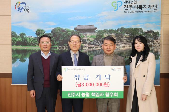 진주시 농협 책임자 협우회(회장 황광석)는 27일 지역내 장애인 복지 증진을 지원하기 위해 성금 300만 원을 진주시복지재단(이사장 이성갑)에 기탁했다.