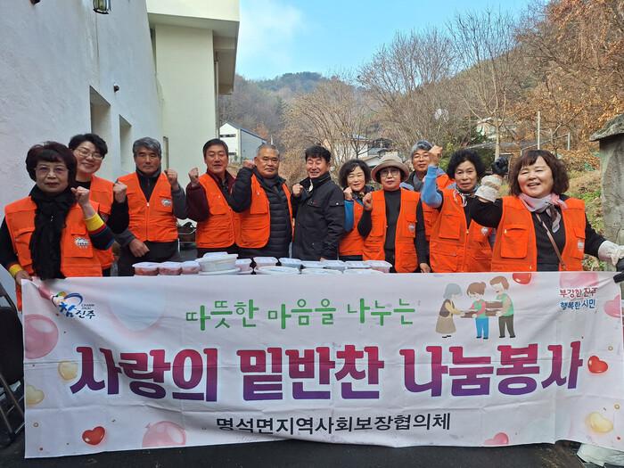 진주시 명석면 지역사회보장협의체(위원장 정상화)는 17일 관내 저소득 취약계층을 위해 직접 만든 밑반찬을 전달하는 ‘사랑의 밑반찬 나눔’ 봉사활동을 실시했다.