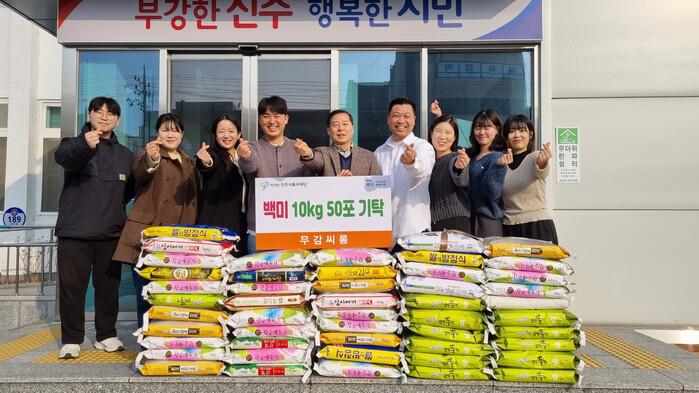 진주시복지재단(이사장 이성갑)은 17일 무감씨롱(대표 이학민)에서 지역 내 취약계층에 전달해 달라며 백미 10kg 50포(총 500kg, 환가액 145만 원 상당)를 기탁했다고 밝혔다.