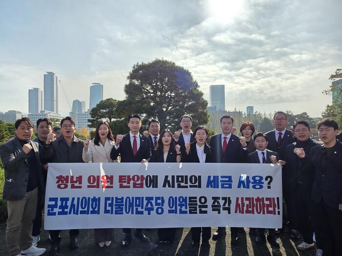 전국 청년 지방의회 의원들은 군포시의회 더불어민주당을 규탄하며 ▲청년 의원을 향한 정치적 탄압을 공식 인정하고 군포시민 앞에 공개 사과할 것 ▲군포시의회를 특정 정당의 정치적 목적에 이용하는 모든 행태를 즉각 중단할 것 ▲무너진 의회 신뢰 회복을 위한 실효적 재발 방지 대책을 마련할 것을 강력히 요구했다.
