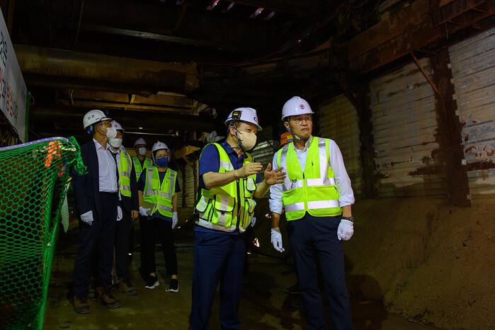 | ▲ 국회대로 지하화 공사 현장을 방문한 이기재 구청장(오른쪽)이 관계자들과 안전점검을 하고 있다.(사진=양천구청 제공) |