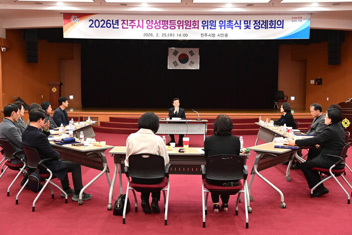 진주시는 지난 25일 시청 시민홀에서 양성평등위원회 위원 14명이 참석한 가운데‘2026년 진주시 양성평등위원회 위원 위촉식 및 제1차 정례회의’를 개최했다.