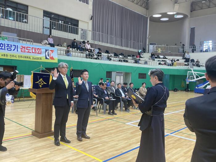 개회식에서는 검도 발전과 생활체육 활성화에 기여한 공로를 인정받아 임준영 진주시검도회 부회장이 진주시장 감사패를, 문기영 부회장이 진주시체육회장 공로패를 받았다.