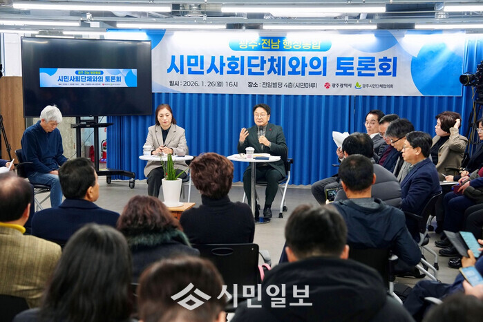 [광주=정찬남 기자] 광주광역시(시장 강기정)는 광주전남 행정통합에 대한 시민사회의 다양한 의견을 수렴하기 위해 26일 전일빌딩245에서 시민사회단체와 함께 ‘광주전남 통합 시민사회분야 공청회’를 개최했다.