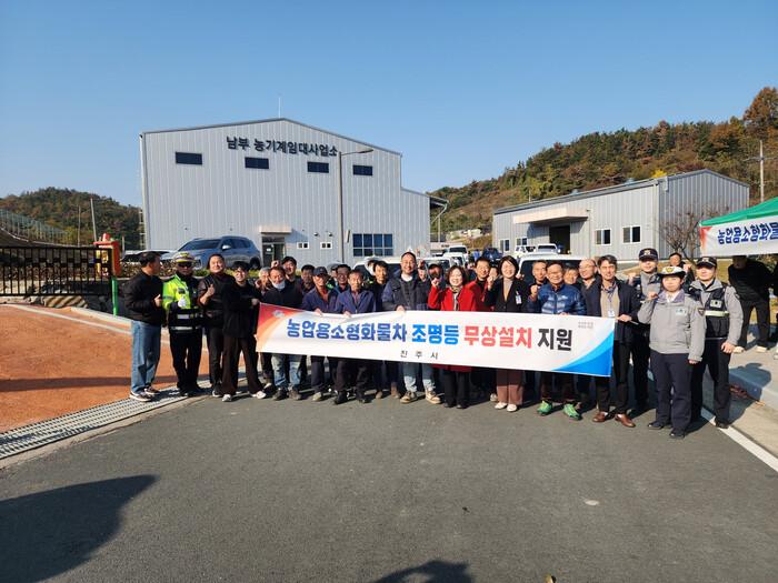 진주시는 지난 18일 남부 농기계임대사업소에서 농촌 지역 고령농업인의 야간 교통안전을 위해 농업용 차량 후방 조명등의 무상 설치를 지원했다.