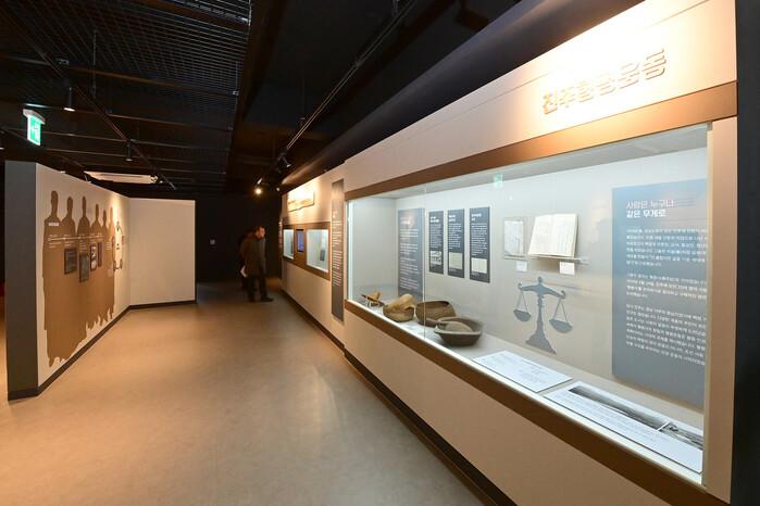 2층 ‘기록공간’은 시대와 세대를 넘어 함께 지켜온 마음인 진주정신의 역사를 기록한 공간으로, 진주에서 발원한 다양한 역사적 사건과 인물, 시민 정신을 체계적으로 전시했다.