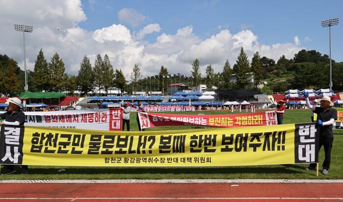 한편 대책위는 지난 6월 28일 500여명이 환경부를 항의 방문했고, 9월 1일 50여명이 경남도를 방문해 “합천군민 모두가 반대하는 황강광역 취수장 설치계획 철회에 동참하고, 합천군을 용역조사에 제외토록 환경부에 요구하라”고 항의했다. 이에 경남도 관계자는 “합천군민들의 의견을 환경부에 전달했으며 도의 입장은 합천군민과 같다”고 말했다.