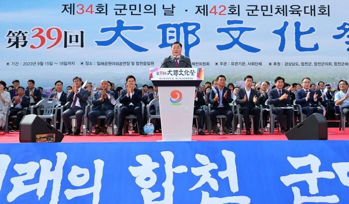 김윤철 합천군수는 기념사에서“대야문화제를 통해 군민 모두의 화합을 도모하고 성숙한 질서의식으로 합천군의 위상을 드높일 수 있도록 도와주신 각계각층의 적극적인 협조와 성원에 감사드린다”고 감사의 인사를 전했다.