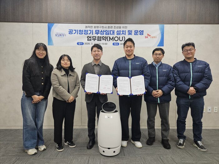협약에 따라 SK인텔릭스는 지역사회 환원의 일환으로 자율주행 인공지능(AI) 공기청정기를 시민 방문이 잦은 민원실에 무상 설치했다. 업체 측은 기기의 유지관리와 정기 점검, 고장 수리 등 전반적인 운영을 책임지며 시민들의 편안한 방문 환경을 지원한다.