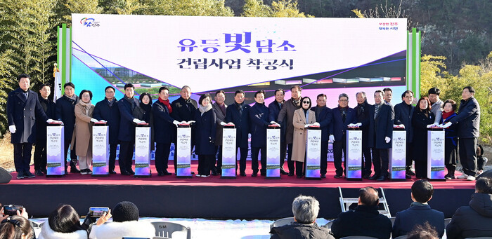 진주시는 21일 오목내의 문화시설 조성사업 지구에서 유등 관광의 거점 시설인 ‘유등빛담소’의 착공식을 개최했다고 밝혔다.