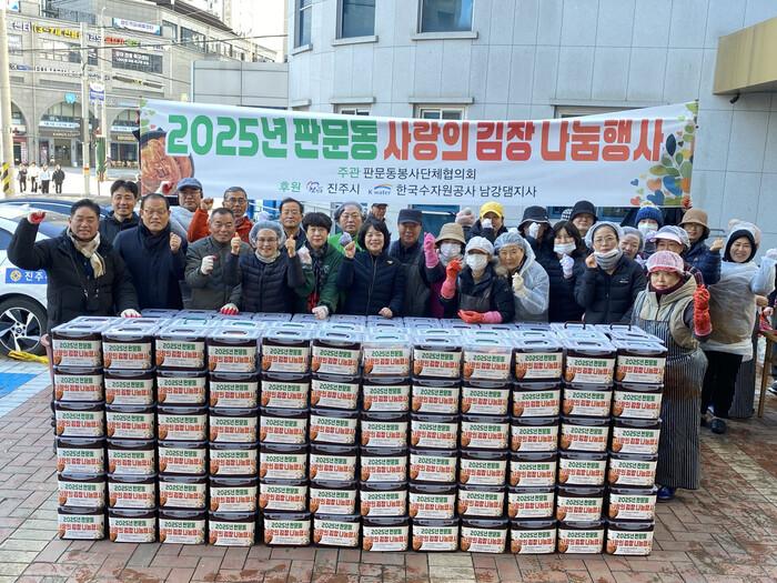 이번 행사는 판문동자원봉사단체협의회가 주최하고 진주시, k-water 남강댐지사가 후원했으며, 자생 단체 회원과 자원봉사자 등 약 70명이 참여해 배추 500포기(2500kg) 분량의 김장 김치를 담갔다.