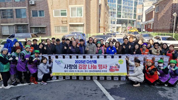 이날 행사에는 다산행정복지센터(센터장 이기복)를 비롯해 관내 교회(다산중앙교회, 다산은혜교회, 예정교회, 남양주광염교회), 다산1동 사회단체협의회 등 20여 개 후원단체가 함께했다. 행사에 참여한 새마을부녀회원과 자원봉사자 등 60여 명은 김장 700포기를 담그며 사랑의 손길을 더했다.