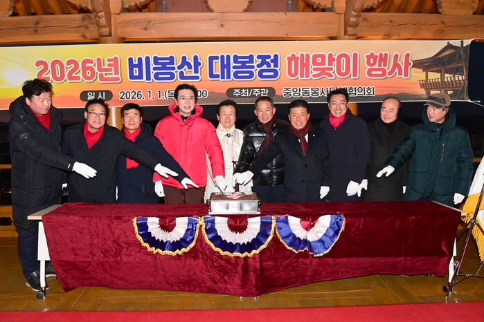 중앙동 봉사단체협의회(회장 이지성)는 1일 중앙동 비봉산에서 ‘2026년 비봉산 대봉정 해맞이 행사’를 열고 희망찬 새해를 맞이했다.