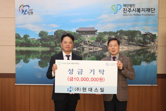 ㈜현대스틸(대표 박영호)는 13일 지역사회 나눔 실천의 일환으로 성금 1000만 원을 진주시복지재단(이사장 이성갑)에 기탁했다.