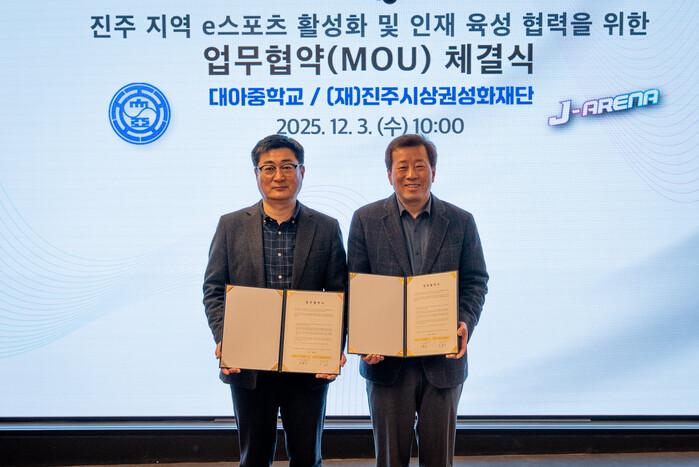 진주시상권활성화재단은 3일 관내 대아중학교와 대곡중학교 등 2개 학교와 진주시 e스포츠 산업과 청소년 문화 활성화를 위한 업무협약(MOU)을 체결했다고 밝혔다.