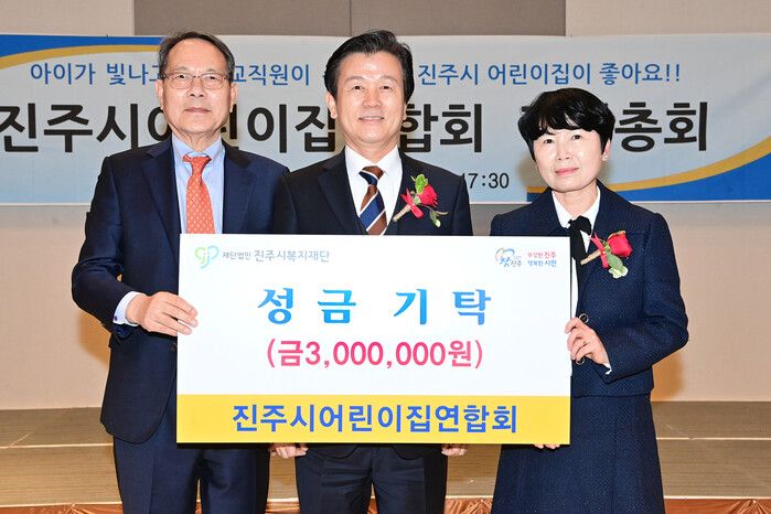 이날 행사는 1부 정기총회에서 2025년 사업결산과 2026년 사업계획을 심의했고, 2부는 진주시복지재단에 300만 원의 성금 전달과 영유아 보육을 위해 노력해 온 보육 사업 유공자에 대한 표창장 수여 순으로 진행됐다.