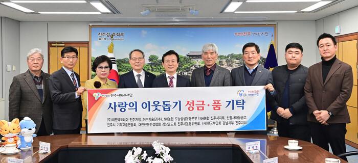 ㈜이번 기탁식에서 ㈜씨엔텍코리아 진주지점(대표 김영연, 제정열)에서 성금 2,000만 원을, 이수기술단㈜(대표 황국주)에서 성금 2,000만 원, NH 농협 도농상생본부와 진주시지부(지부장 이태용)에서 백미 10kg 375포(환가액 1,200만 원 상당)를, 신평새마을금고(이사장 하성식)에서 성금 500만 원, 진주시기독교총연합회(회장 박형호)에서 성금 500만 원, 대한전문건설협회 경상남도회 진주시운영위원회(위원장 박동식)에서 성금 500만 원, (사)한국부인회 경남지부 진주지회(회장 신부연)에서 성금 200만 원을 지역사회 저소득층 및 장애인 복지 지원을 위해 기탁했다.