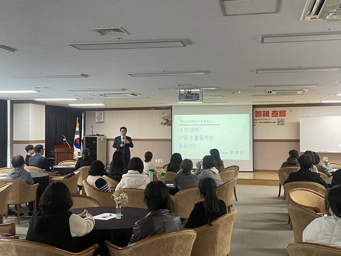 이번 강좌는 진주시 평생학습관 강사인 강호경 강사를 초청해 병오년의 시대적 흐름을 이해하고, 사주명리학을 통해 개인의 연간 운의 방향성을 살펴보는 내용으로 진행됐다. 강의는 사주명리학의 기본 개념을 알기 쉽게 설명하는 이론 강의와 함께, 병오년의 기운이 개인의 삶에 미치는 영향을 짚어보는 실천 중심 프로그램으로 구성됐다.