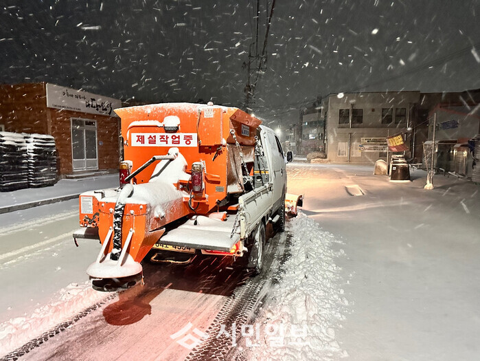 앞서 군은 지난해 11월부터 제설장비 사전 점검과 제설제 확보 등 철저한 준비를 통해 강설에 즉각적인 대응 체계를 구축한 결과 신속한 제설 작업으로 이어지고 있다.