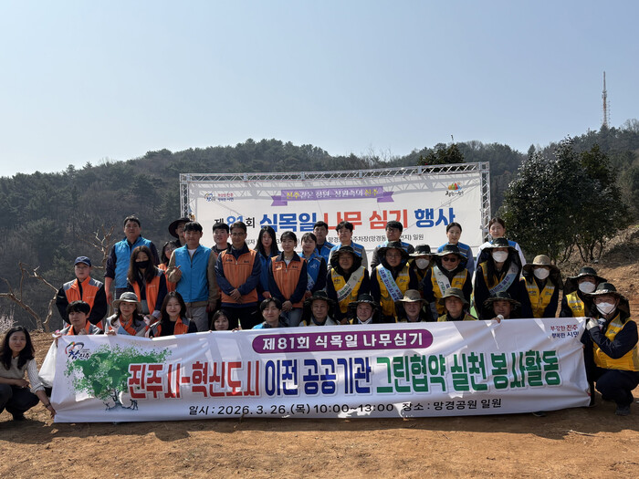 진주시는 26일 망경공원 일원에서 혁신도시 이전 공공기관 임직원들과 함께 ‘2026년 제1회 그린 협약 실천 봉사활동’을 펼쳤다.