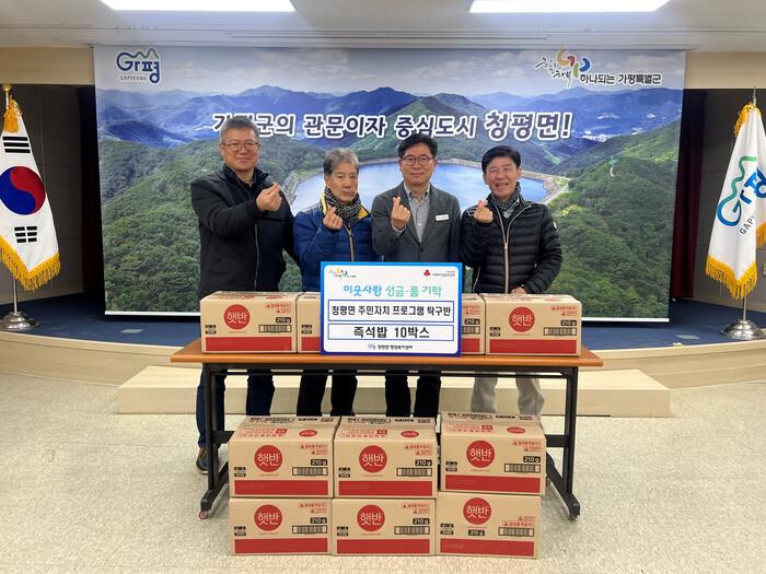 청평면 주민자치 프로그램 탁구반 회원들 역시 따뜻한 온정을 보탰다. 최근 청평면 행정복지센터에 즉석밥 10박스를 전달하며 “작은 정성이지만 이웃들에게 따뜻한 위로가 되길 바란다”고 전했다. 박성규 청평면장은 “회원들의 자발적인 참여에 감사드리며, 소중한 물품은 도움이 필요한 가구에 잘 전달하겠다”고 말했다.