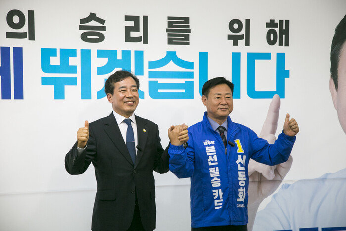 신동화 예비후보는 “권 후보와 20여 년간 정치적 길을 함께 걸어왔다”며 “오늘을 기점으로 구리시 혁신을 위한 완전한 하나가 됐다”고 말했다.