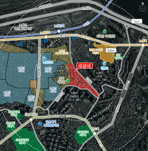 | ▲ 노량진동 221-24번지 일대 모아타운 위치도.(사진=동작구청 제공) |