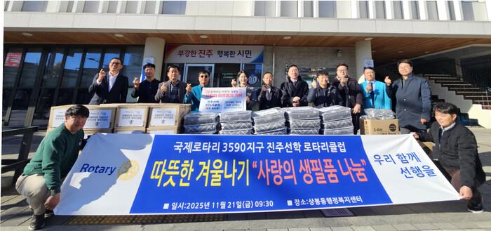 진주선학 로타리클럽 윤순영 회장은 “작은 정성이지만 어르신들께 도움이 되길 바라는 마음으로 준비했다”며 “앞으로도 지역의 어려운 이웃을 위한 나눔 활동을 꾸준히 이어가겠다”고 말했다.