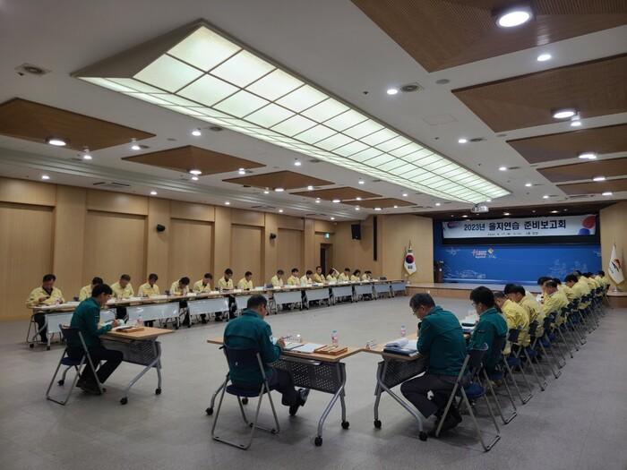[김천=박병상 기자] 경북 김천시가 지난 17일 시청 3층 강당에서 2023년 을지연습 준비보고회를 개최했다.