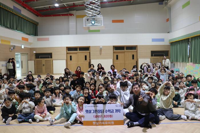 햇살가득유치원은‘햇살가득 힘차라! 빛나라! 펼쳐라!’라는 비전 아래 아이들이 배려와 나눔의 가치를 자연스럽게 익힐 수 있도록 마련된 수익금을 기부해 그 의미를 더했다.