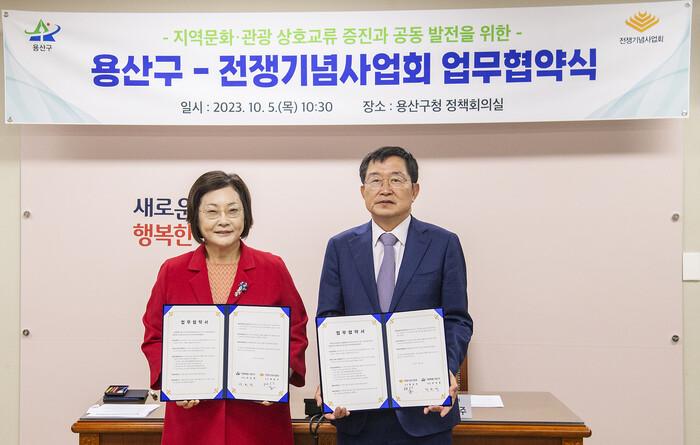 [시민일보 = 홍덕표 기자] 서울 용산구(구청장 박희영)는 지난 5일 구청 정책회의실에서 전쟁기념사업회와 '지역문화·관광 상호 교류 증진과 공동 발전을 위한 업무협약(MOU)'을 체결했다.