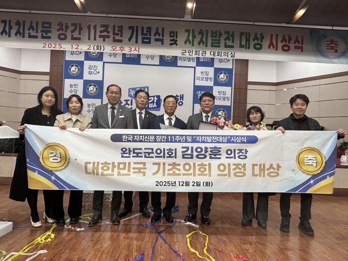 김양훈 의장은 “이번 수상은 저 개인의 영예가 아니라 군민 여러분의 응원과 동료 의원들의 협력, 그리고 의회사무과 직원들의 헌신이 함께 만든 결과”라며, “앞으로도 군민의 행복과 완도 미래 발전을 위해 더욱 책임 있게 의정활동에 임하겠다”고 소감을 전했다.