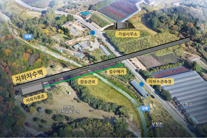 보길도 지하수 저류 댐은 지난 2023년도에 설치됐으며 지표면 아래에 차수 벽을 설치하여 지하 수위를 상승시킴으로써 가뭄에도 지하수를 확보할 수 있는 시설이다.