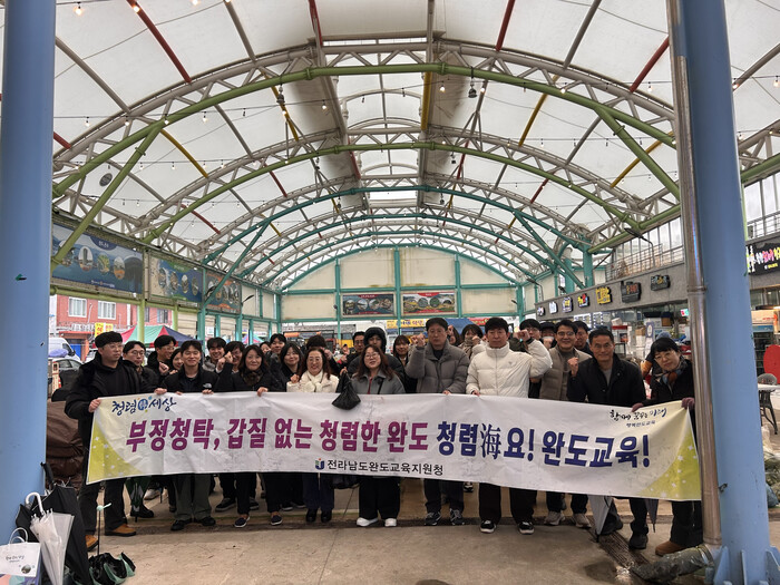 [완도=김현종 기자]완도교육지원청(교육장 이철영)은 2026. 2. 10.(화) 14시, 완도읍 5일시장에서 직원들이 함께 참여하는 「전통시장 가는 날」 행사를 성황리에 마쳤다.