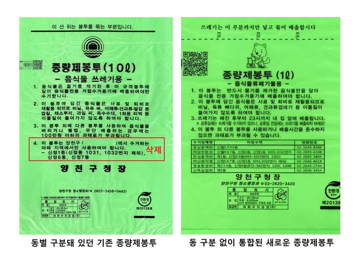 기존에는 반드시 동별 지정된 대행업체의 종량제봉투에만 쓰레기를 배출해야 했다. 이로 인해 구민들은 양천구 내에서 이사하더라도 이사 간 동의 대행업체 구역이 다른 경우 종량제봉투를 매번 새로 구입해야 하는 불편을 겪었다.