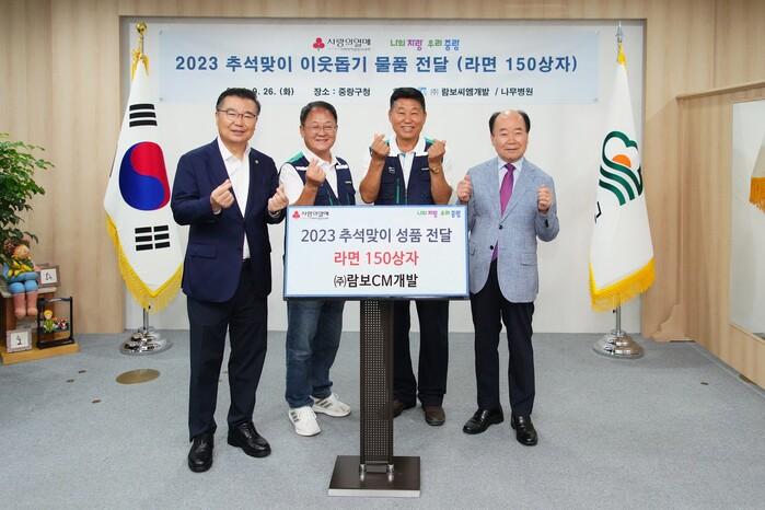 26일에는 ㈜람보CM개발이 지역 내 경로당에 전달해 달라며 라면 133상자를 기부했다.