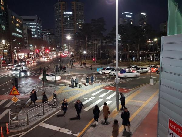 | ▲ 지난 18일 LED집중조명이 설치된 구청삼거리 전경. (사진제공=송파구청) | ||