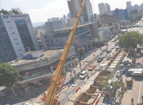 | ▲ 올림픽로 하수암거 설치 공사. (사진제공=강동구청) | ||
