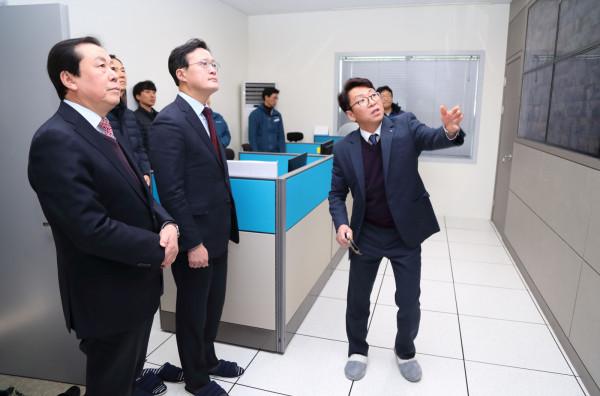 | ▲ 채현일 구청장이 확장 이전된 통합관제실에 방문해 살펴보는 모습. (사진제공=영등포구청) | ||