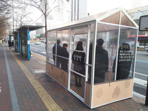 | ▲ 잠실역 4번 출구에 설치된 독립형 '정양막'. (사진제공=송파구청) | ||