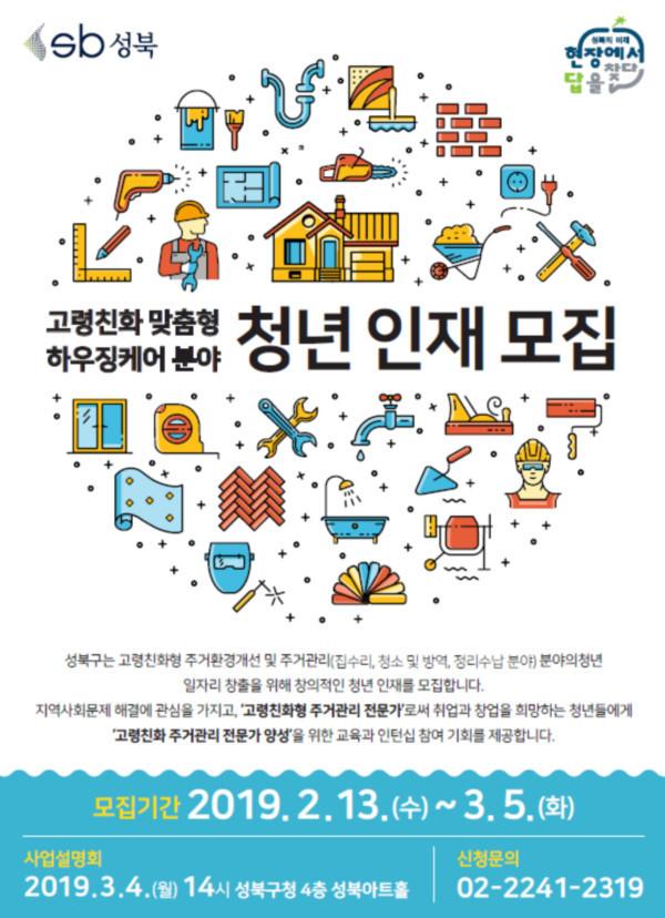 [시민일보=고수현 기자] 서울 성북구(구청장 이승로)가 오는 3월5일까지 '노인 주거환경개선 사업'을 위한 청년 인재를 모집한다.
