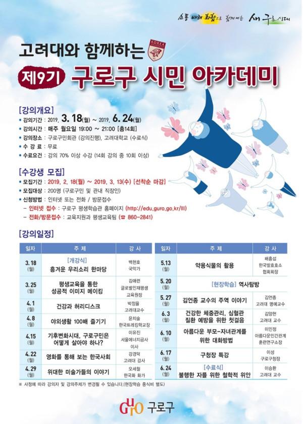 [시민일보=이대우 기자] 서울 구로구(구청장 이성)가 고려대와 함께 오는 3월18~6월24일 ‘시민 아카데미’를 운영한다.