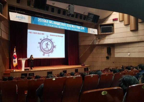 | ▲ 지난 11일 구청 대강당에서 '유니버설디자인 인식 확산 직원 교육'이 진행되고 있는 모습. (사진제공=마포구청) | ||