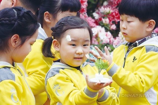 21일 전남 함평엑스포공원 다육식물관에서 열린 함평나비대축제 성공기원 나비 날리기 행사에서 지역 어린이집 원아들이 나비를 관찰하고 있다.