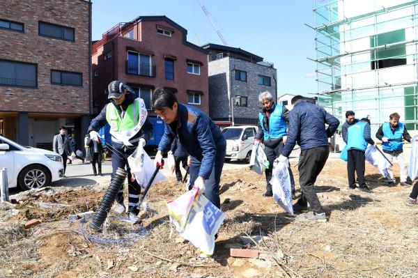 경기 하남시는 22일 새봄을 맞이해 깨끗하고 쾌적한 생활환경 조성을 위해 시민, 공무원 등과 함께 깨끗한 경기의 날 특별대청소를 실시했다. 사진은 참여자들이 쓰레기를 수거하고 있는 모습. (사진제공=하남시청)