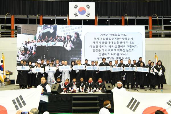 경기 구리시는 최근 나라를 위해 헌신한 국가유공자들에 대한 예우 확산을 위해 ‘제1회 국가유공자의 날’ 기념행사를 개최했다. 행사는 독립선언서 낭독, 대한독립 만세삼창 등으로 진행됐다. 사진은 독립선언서를 낭독하고 기념촬영을 하는 모습. (사진제공=구리시청)