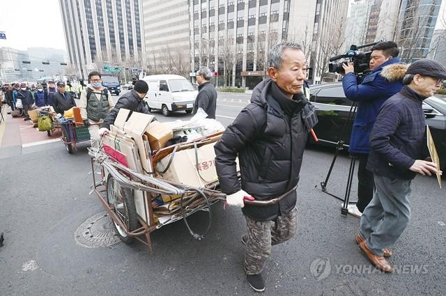 “줬다 뺏는 기초연금 개선하라” 노인들 순수레 시위