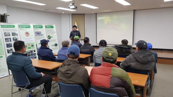 경기 의정부시는 25일 시보건소 교육실에서 방역소독 실무자를 대상으로 '2019년 방역소독 실무 및 안전에 대한 교육'을 실시했다. 사진은 시 관계자가 친환경 유충방역에 대해 설명하는 모습. (사진제공=의정부시청)